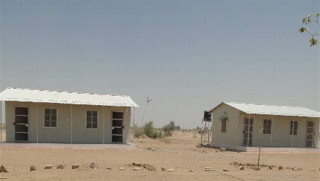 These shelters can be made out of cement particle board, precoated profiled panel with puff, with accessories such as beds, cabinets, toilet blocks, etc.
